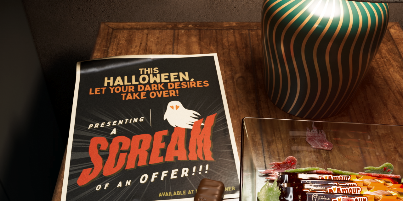 “Almonds, honey, caramel scream — trick or treat, it’s a Halloween dream!”